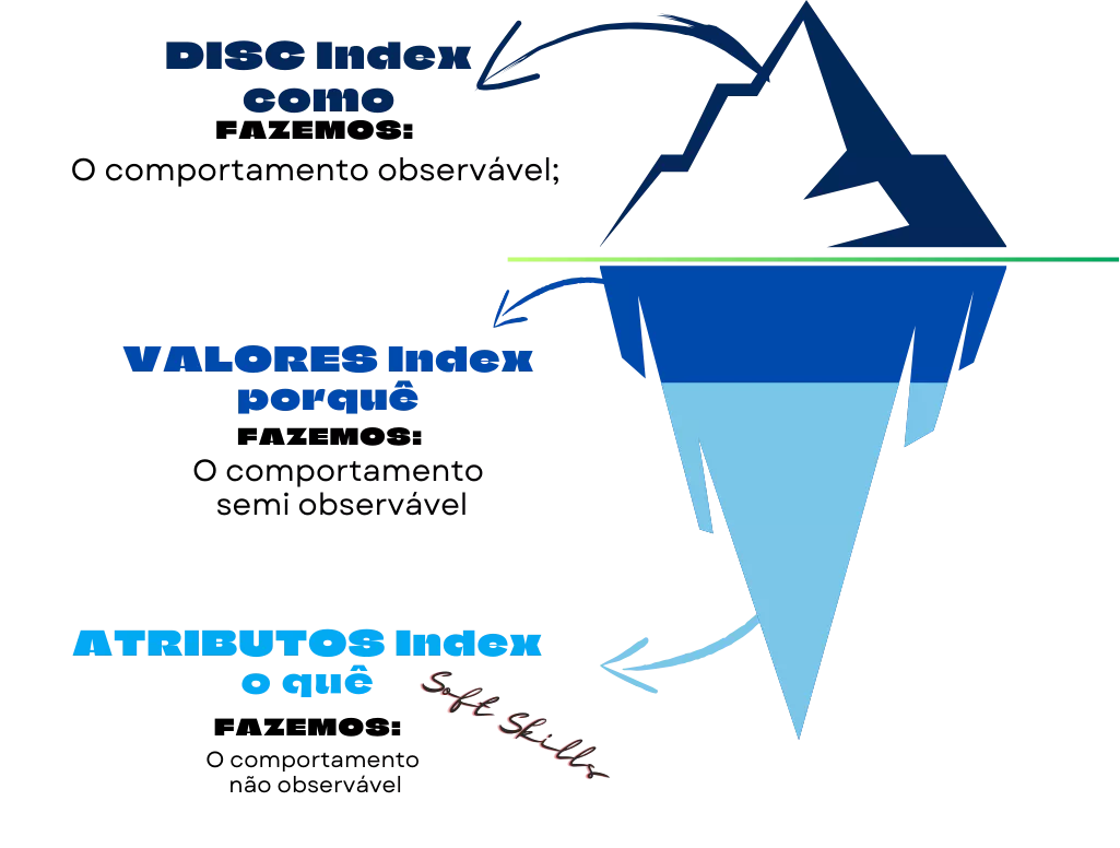 O Índice de Atributos mede como você pensa e toma decisões, o Índice de Valores mede seu estilo motivacional e motivadores e o Índice DISC mede seu estilo comportamental preferido.