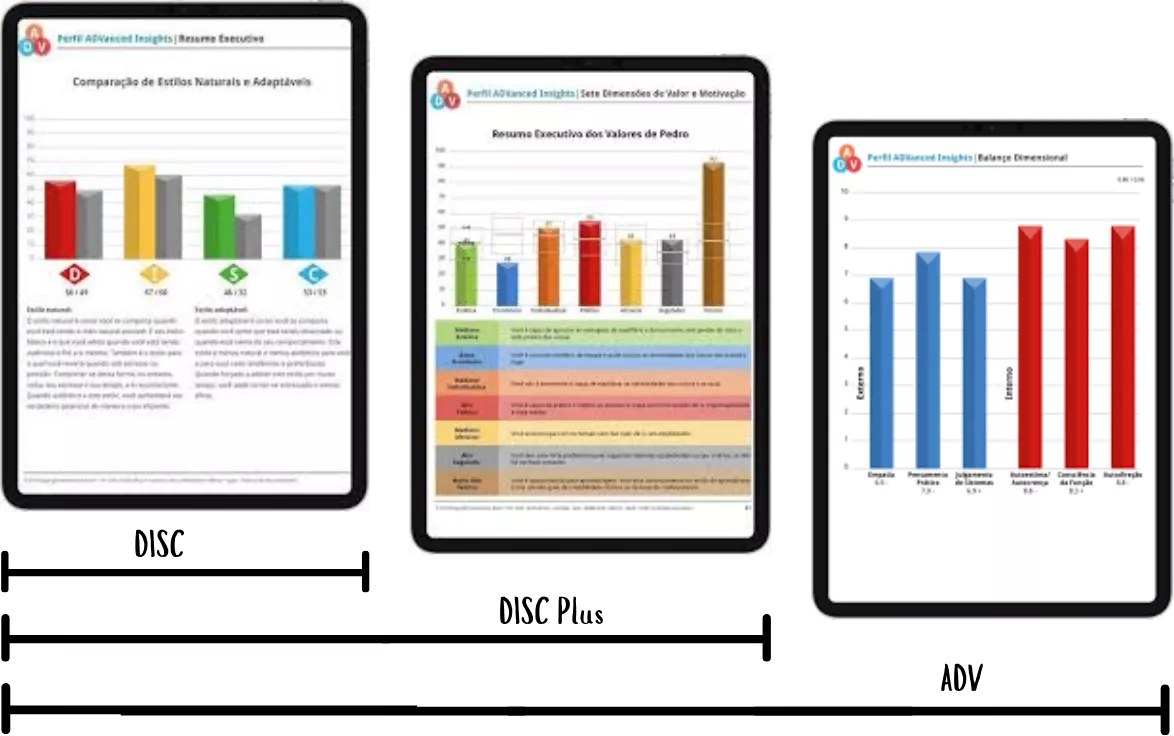• Um relatório individual com seu perfil comportamental, motivadores, atributos e estilo decisório